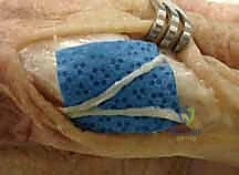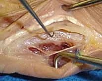 TECH FIG 1 • B. The deep subtendinous layer of the metacarpal is demonstrated. Note that the periosteum is still intact. This layer is repaired covering the implant to prevent tendon adhesions.