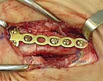 * The optimal method of fixation, including plate size, type (compression, locking, T-plate, Y-plate, condylar plate), and screw length/number. We aim for at least six cortices of fixation (three screws) proximal and distal to the osteotomy if possible.
