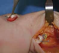 - Identifying Drill Site: "Back to the dorsal wrist. We need to create a bone tunnel through the ulnar head." Identify the ulnar head. The drill entry point is typically on the dorsal aspect of the ulnar head, just distal to the articular cartilage.