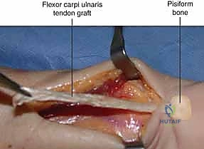 > **Surgical Pearl:** Ensure the harvested tendon strip is of adequate diameter and length. If the FCU is too small or damaged, alternative grafts like palmaris longus or plantaris may be considered, but FCU is preferred due to its anatomical proximity and strength.