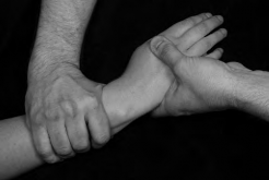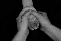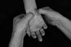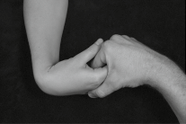 Facing the patient, one of the examiner’s thumbs is placed over the palmar aspect of the capitate bone reinforced with the thumb of the other hand. The fingers of both hands are then wrapped around the dorsum of the patient’s hand ensuring the wrist is supported in a neutral position and taking care with the handhold not to involve the patient’s thumb.