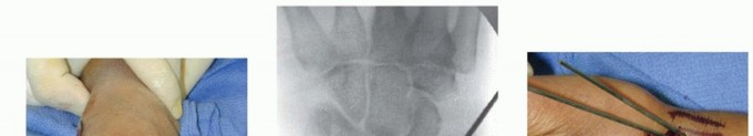 Indications ▪ Determine stability1.Determine comminution and supplement fixation with external or internal fixation as necessary.Surgical approach1.Make skin incisions for pin placement to avoid sensory nerves, tendons, and crossing veins.2.Obtain adequate exposure of the radial sensory branch at forearm and hand to avoid injury.Hardware placement3.Choose pins of appropriate diameter.4.Supplement fixation with pins using external or internal fixation as necessary.5.Do not leave pins more than 1 to 2 mm out of the cortex, and keep all pins extra-articular.6.If placing the proximal metacarpal pin in metaphyseal bone, ensure that three cortices are penetrated.7.Do not back out conical pins because fixation will be lost.8.Evaluate the DRUJ after fixation to determine stability.9.Subcutaneous pins are more costly to remove because that requires a second procedure, but they have a lower infection rate. Therefore, if fixation is needed for an extended period, bury the pins.10.Overdistraction of the carpus must be avoided because it is associated with chronic pain-mediated syndromes and nonunion.Postoperative management1.Allow for adequate immobilization.2.Encourage early range of motion of the fingers, elbow, and shoulder whenever possible.3.Educate the patient regarding appropriate pin care.4.Begin strengthening only after healing is complete and range of motion is maximized.