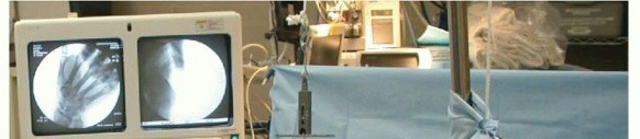 FIG 7 • An alternative arthroscopic setup can be useful. A nonsterile overhead traction boom (an arthroscopic shoulder holder) is used from the contralateral side of the operating room table to suspend the limb via finger traps with countertraction provided by a strap on the arm. With this method, the fluoroscopic images of the wrist can be obtained without being obscured by the arthroscopic wrist tower.