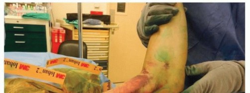 Positioning depends on the planned approach and the surgeon's preference.We prefer the patient supine with the affected extremity brought across the chest over a bump to allow access to the posterolateral elbow.A sterile tourniquet is placed high on the arm.
