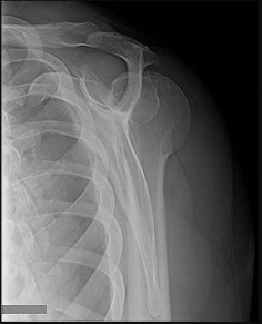 ..Figure 99a is the radiograph of a 48-year-old woman 8 months after initial treatment of an injury. She initially was placed in a sling and progressive rehabilitation followed. She now has refractory pain but normal range of movement and strength. The current radiograph is shown in Figure 99b. The most appropriate next treatment step is