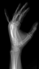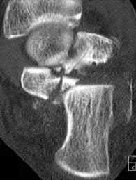 Figures 1 through 3 show the radiographs obtained from a 40-year-old woman who injured her right index finger in a bicycle collision. Failure to restore sagittal plane alignment would likely result in