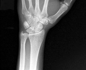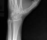 Figure 41 is the radiograph of a 13-year-old gymnast who has a 6-month history of wrist pain. She has a 20% loss of motion, and she especially experiences pain with forced dorsiflexion. The most likely cause of her pain is