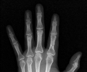 A patientâs upper extremity radiographs are shown in Slide 1 and Slide 2. Which of the following tumor suppressor genes is most likely involved: