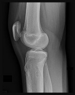 Figures 32a through 32d are the radiographs and MR images of a 13-year-old girl with new posterolateral knee pain following a fall. What is the best next step?