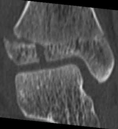 A 15-year-old boy presents with a 2-year history of pain in the foot associated with a sense stiffness and of giving way of the ankle. Upon examination, pain in the sinus tarsi, slightly decreased subtalar motion, and normal ankle motion with no apparent instability are noted. A lateral foot radiograph is presented. The next radiograph to obtain is: