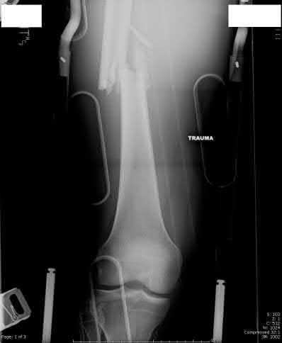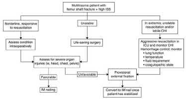 1233) A 32-year-old man is brought to the emergency department after being involved in an MVC. He is found to have a closed left femoral shaft fracture (Figures A and B) and a Glasgow Coma Scale (GCS) score of 13. A CT scan of the head is performed and demonstrates no significant bleeding. He has no other injuries and is hemodynamically stable. Which of the following statements is true?