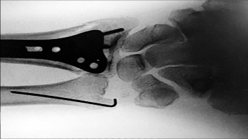 Figures 25a through 25c are the radiographs of a 65-year-old man who sustained a fracture from a fall. The patient elects open reduction and internal fixation of the distal radius. After plating the distal radius, the distal radioulnar joint (DRUJ) is examined and found to be unstable in both pronation and supination. What is the best next step?