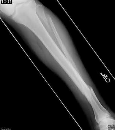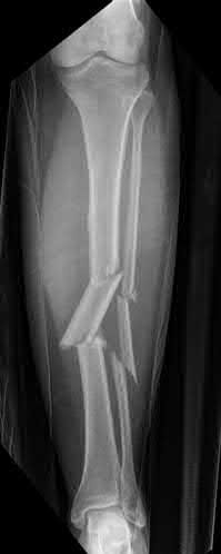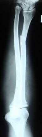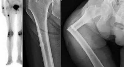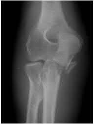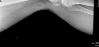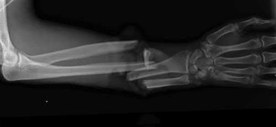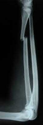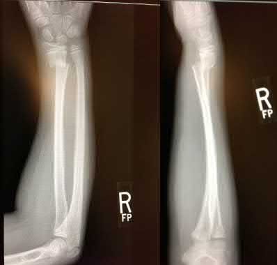 You order a radiograph of the forearm. The anteroposterior radiograph is shown (Slide 1). The childâs skeletal radiograph survey is also presented (Slide 2 and Slide 3).