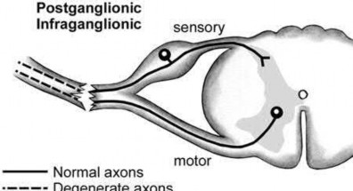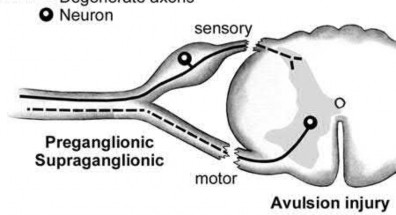 A 26-year-old male sustains a traction injury to his left arm after a motorcycle crash with resulting weakness in this left upper extremity. An electromyography (EMG) done shows normal cervical paraspinal muscle activity. Which of the following statements is true regarding this injury?