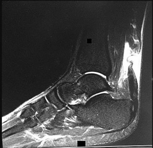 A 60-year-old woman has pain along the medial aspect of the ankle.