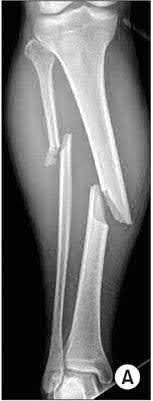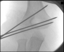 Figure 24 shows the radiograph of a 10-year-old boy who sustained a valgus injury to the knee. Examination reveals grade III medial laxity. Initial management should consist of