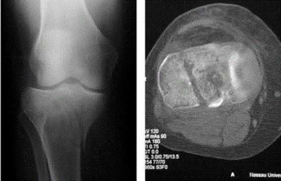 The parents say that they first noticed the deformity around 6 or 7 years ago, and the mother informs you that she had noticed a hard bump on the forearm. She has recently noticed another bump on his right leg. The child does not complain of pain and is using both of his hands quite well. The parents were informed by a previous physician that the child has Madelungâs deformity and are concerned that the disease is now involving other areas of his body.