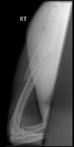 A 5-year-old boy has a deformity of his right arm after falling from a jungle gym.