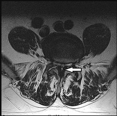 Figure 68 is the MR image of an 85-year-old patient who cannot ambulate unless leaning over things. While sitting, the patient has minimal pain. Which structure is the arrow pointing to?