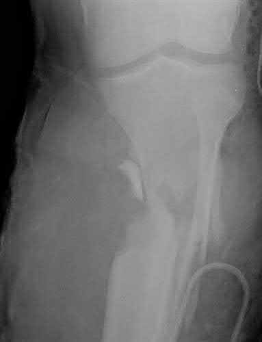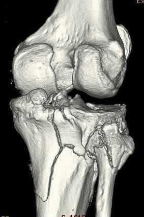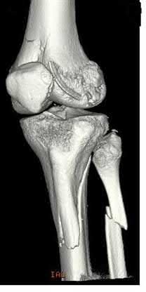 Malunion and soft tissue compromise are two complications with a high association to proximal third tibial shaft fractures. The most common deformity seen in a malunited fracture is valgus and procurvatum due to the pull of the pes anserine and the patellar tendon, respectively. Numerous techniques exist to help prevent this deformity including the use of blocking screws, unicortical plating, and the universal distractor. If blocking screws are employed they should be placed on the concavity of the expected deformity, which in this case would be posterior in the sagittal plane and laterally in the coronal plane of the proximal fragment. Once reduction is obtained, if the blocking screws are left in place they have the added benefit of creating a stronger construct.