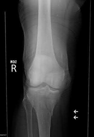 5) Irrigation and debridement with external fixation of tibia plateau fracture and external fixation of femur fracture