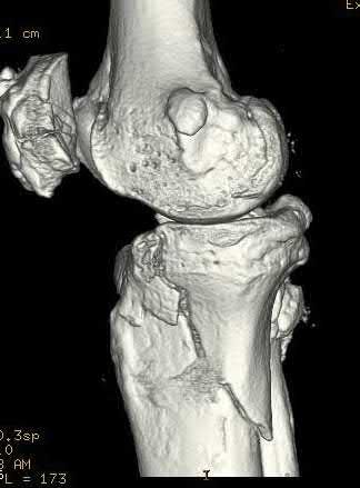 1) Irrigation and debridement of open tibia plateau fracture and traction stabilization of femur and tibia plateau fractures