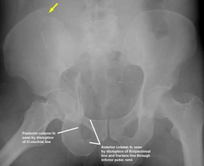 Figure A shows an axial pelvic CT cut with a posterior wall acetabular fracture. Incorrect answers: