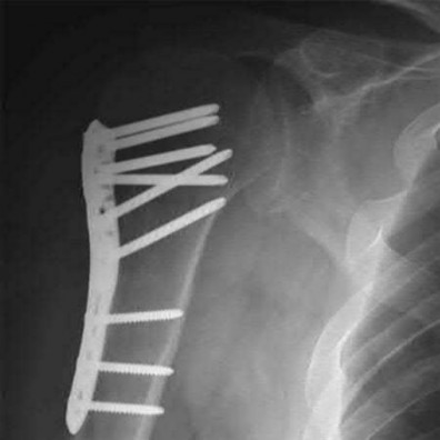 Plate fixation of the diaphyseal fracture and 3 cancellous screws