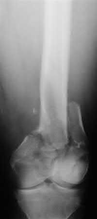 The clinical presentation and radiographs are consisted with persistent oligotrophic non-union of the femur, after reamed nail exchange. Of the following factors, cigarette smoking has been shown to have the biggest effect on non-union in this population.