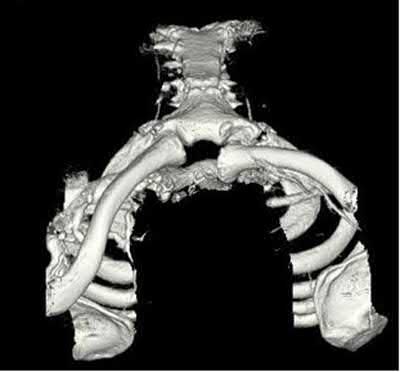 2) Open reduction in the operating room with thoracic surgery back-up
