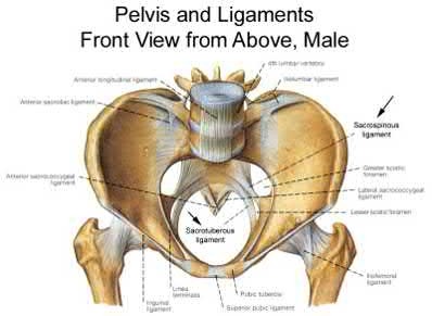 Type II anterior-posterior compression (APC) pelvic ring injuries have disruption of the symphysis pubis, as well as disruption of the anterior SI ligaments, sacrotuberous ligament, and sacrospinous ligament. The alternative pattern of disruption of the pelvic floor ligaments is sometimes seen as an avulsion injury from the bony attachments of these structures (sacrum or ischium).