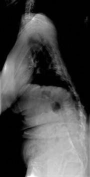 at the disk levels but also at the midvertebral body levels,and the posterior longitudinal ligament appears to be thickened. The CT scan confirms that the posterior longitudinal ligament is indeed thickened and ossified, compatible with a diagnosis of ossification of the posterior longitudinal ligament. This diagnosis is most common in individuals of