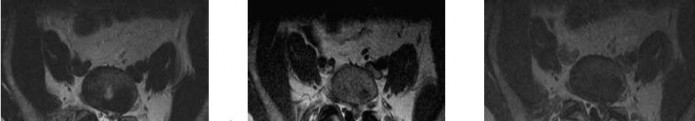 DISCUSSION: The MRI scan reveals a foraminal disk herniation originating from the L4-L5 disk space that has migrated into the foramen compressing the left L4 nerve root. There is no evidence of compression of the right L5 nerve root. Bowel and bladder dysfunction are not associated with L4-mediated nerve function. There is no evidence of arachnoiditis or pseudomeningocele. PREFERRED RESPONSE: 1