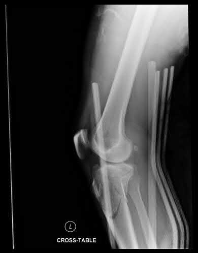 Figure A shows an isolated tibial shaft fracture. Incorrect Answers: