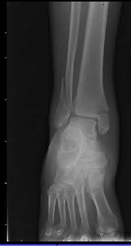 Figures A and B show an extraarticular distal tibia fracture with distal fibula fracture.