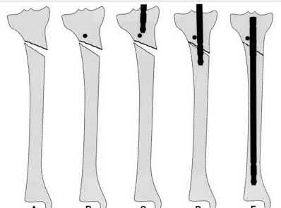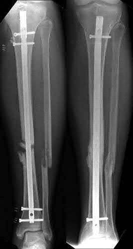 Bhandari et al. conducted a prospective, randomized, blinded comparison of 622 patients who had reamed nailing, and 604 who had unreamed nailing. For closed fractures, a significantly greater number in the unreamed group required bone grafting, implant exchange and dynamization. There was no difference in groups for open fracture nailing.