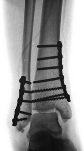 Locked medial tibial plating and fibular plating