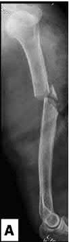 Figure A is an AP radiograph demonstrating a displaced femoral neck fracture. Incorrect Answers: