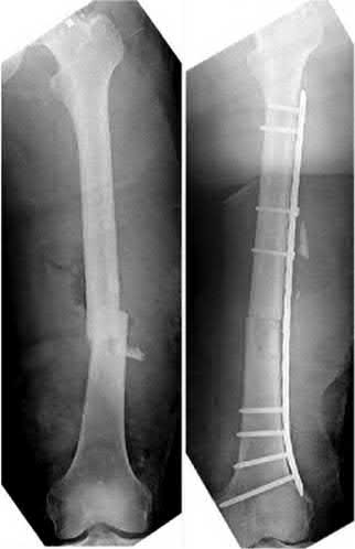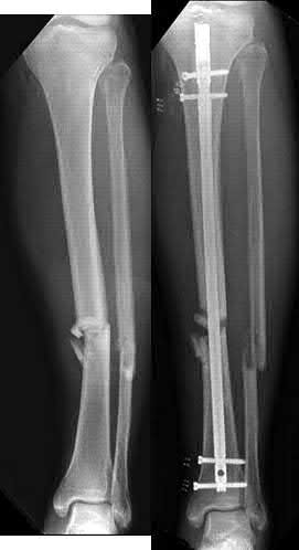 Unreamed intramedullary nailing and fibular plating