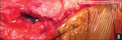 3) Placement of an inferior retractor under the transverse acetabular ligament