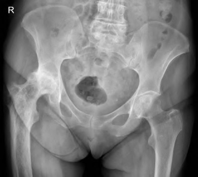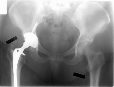 In contrast to asymptomatic osteonecrosis in patients without sickle cell disease, patients with sickle cell disease have a high incidence of progression to collapse and functional impairment secondary to pain (33% compared to 75%, respectively). In patients with sickle cell disease who present with a symptomatic hip, the contralateral (presumably asymptomatic) hip should be screened carefully and periodically for signs of disease. Given the high rate of