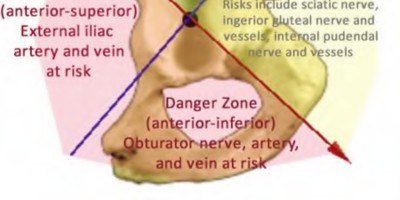 Answer 4: This screw places the external iliac artery and vein at risk, and is considered the "danger" zone.