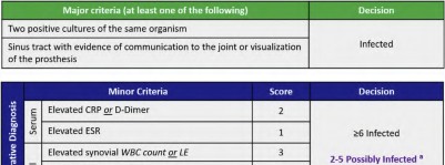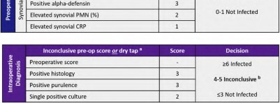 In an earlier, smaller study, Mason et al reported on 31 septic TKA failures and concluded that aspirates with a WBC count greater than 2,500 and 60% PMNs are highly suggestive of infection.
