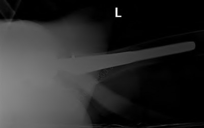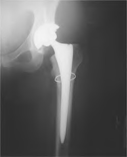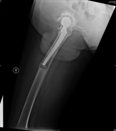 Sinha et al showed in a retrospective review of 101 hips with cementless circumferentially coated femoral stems no distal femur osteolysis occurred, but 82% showed “evidence of proximal femur stress shielding”, though only 38% showed proximal femoral osteolysis.