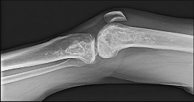 Figures 6a through 6d are the radiographs and T1-weighted sagittal and fat-saturated axial MR images of an otherwise healthy 56-year-old man who has anterior knee pain and intermittent swelling after sustaining a noncontact twisting injury. Low-power and high-power hematoxylin and eosin stained histologic specimens are shown in Figures 6e and 6f. Based on the history, radiographs, CT scan, MR imaging, and histologic findings, what is the most likely diagnosis?