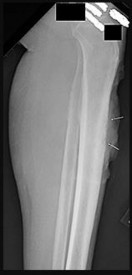 chemotherapy. Wide resection, endoprosthetic proximal tibia replacement, a medial gastrocnemius flap, and a split-thickness skin graft were performed. The preferred postsurgical knee rehabilitation regimen is