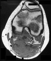 The lesion in the posterior intercondylar knee notch is a benign synovial hemangioma. Intralesional calcifications, classically associated with hemangiomas, are frequently not identified on plain radiographs. The MR imaging reveals a hypervascular lesion with multiple filling defects, with hyperintensity on T2-weighted images and low-to-intermediate signal intensity on T1-weighted images. Histologically, vascular lakes within fine capillaries with a synovium on the surface of the lesion are characteristic of this condition. Many patients with synovial hemangioma have pain, swelling, stiffness, or mechanical symptoms. The correlation of symptoms with the hemangioma for this patient is unclear because there was recent trauma and a concurrent meniscus tear. Simultaneous treatment of both potential sources of pain is typically recommended. As with PVNS, the disease can be localized or diffuse. Surgical excision, either open or arthroscopic, is the recommended treatment. PVNS is the most common intra-articular tumor, but hypointensity in either the diffuse or localized type is characteristic in both T1- and T2-weighted images. Synovial sarcoma, although often found close to a joint, is not characteristically found within a joint.