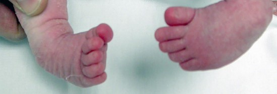 No known genetic or environmental factors are associated with the etiology of Fibular hemimelia (Figure 93). Nearly all of these patients have an absent Anterior Cruciate Ligament. Additional associations include, absent rays of the foot, tarsal coalition, hypoplastic or aplastic fibula, leg-length discrepancy, femoral and tibial hypoplasia and lower extremity angular deformity.