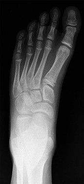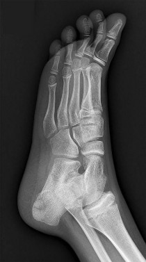 Figures 6a through 6c show septic arthritis of the ankle with metaphyseal osteomyelitis. The recommended treatment is incision and drainage followed by IV antibiotics. MRI may be considered before surgery to assess for an associated osteomyelitis or abscess that may also necessitate surgical debridement. Increasingly, these scenarios are managed with a rapid transition to oral antibiotics.