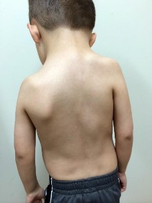 Fifty percent of patients with Neurofibromatosis type 1(NF1) (Figure 95) will have musculoskeletal manifestation of the disease; most commonly scoliosis and pseudarthrosis of the tibia. Twenty percent of patients with NF1 present with scoliosis. Dystrophic scoliosis is typical of NF1. Dystrophic features of include: scalloped vertebra, penciled ribs, severe